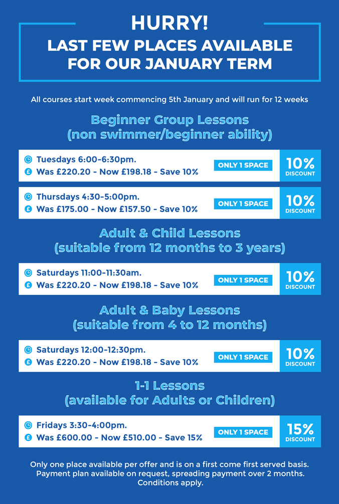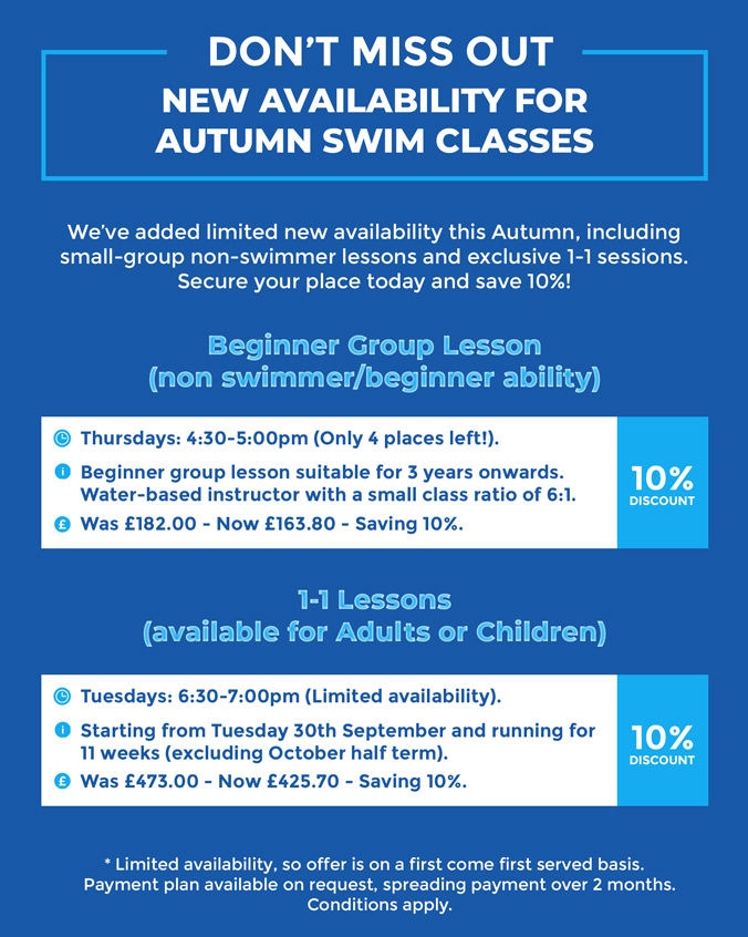 We recognise that every swimmer’s progression is unique and our swim instructor’s will tailor our programme to ensure it is appropriate and inclusive for each individual.